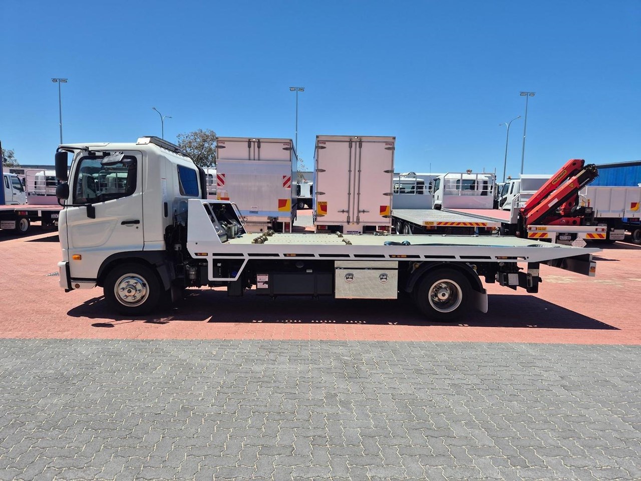This Lovely "AS NEW" 2019 Hino FC1022 AUTO is complete with a Bozmac Remote Controlled Tilt Slide Body, Underbody Toolboxes, Towbar, Amber Beacons, Reverse Camera, 6600lb Winch (2990kg) Remote Controlled Winch and presents amazingly well!
