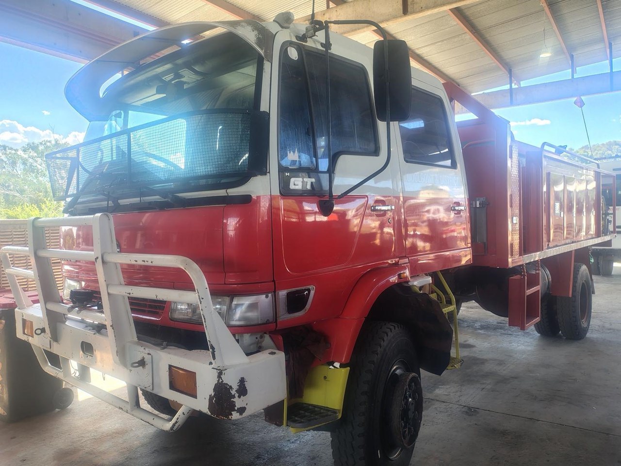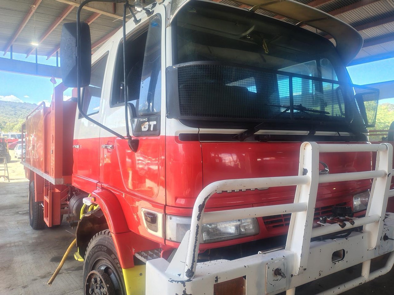 2001 Hino GT 4x4 Dual Cab Fire Truck, direct from NSW Rural Fire Service, 7 seats, 6 speed manual. Fully equipped Firetruck, and fitted with a Hatz Diesel pumpset with a Gaam pump and foam application.