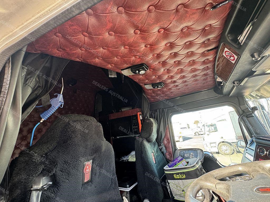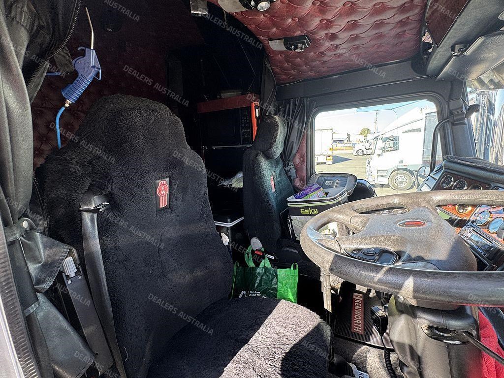 2015 Kenworth T909 6x4 Prime Mover, Cummins ISX E5 Engine @ 550Hp, 18 Speed Road Ranger Transmission, Meritor RT46-160 Rear Axles on Kenworth Air Glide Air Bag Suspension, Polished Alloy Bull Bar with LED Spot Lights, Plastic Bug Off, Stainless Steel Drop Visor, Dual Exhaust 10 Stud Alloy Wheels with Super Singles to the Steer, Square Tanks, Stainless Steel Drive Guards, Aero Kit with Wings, Holland Fixed QRTT, Custom Air Bunk Cooler, Chassis Deck Plate, Maroon Diamond Stud Trim, Air Ride Drivers Seat, Wood Grain Dash, Radio Cd Player, A/C, Power Steering, Turbo Timer, Microwave,
