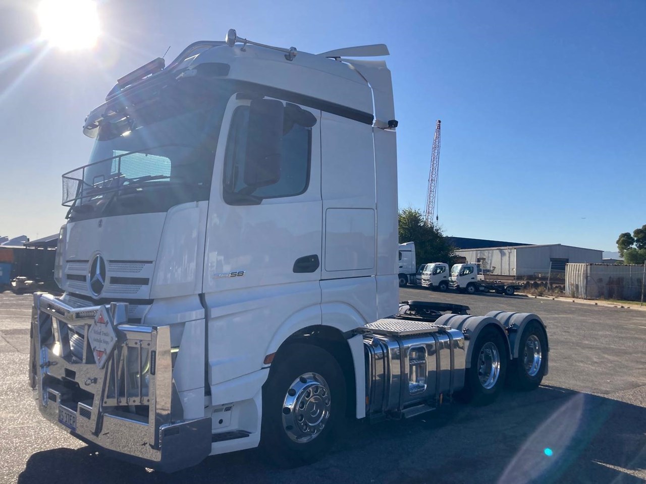 2021 Mercedes Benz Actros 2658 6x4 prime mover 106000 kg GCM, Mercedes OM473 580hp engine, Mercedes Powershift 3 12 speed AMT transmission, Mercedes Hypoid axles on air bag suspension, alloy bull bar, aerodynamic kit, new drive guards, SA Government roadworthy inspection, in excellent condition & ready to go.