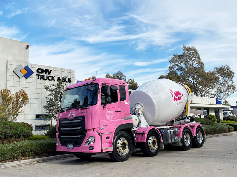 Leading the pink fleet’s charge is VicMix’s latest acquisition, a UD Quon 8×4.